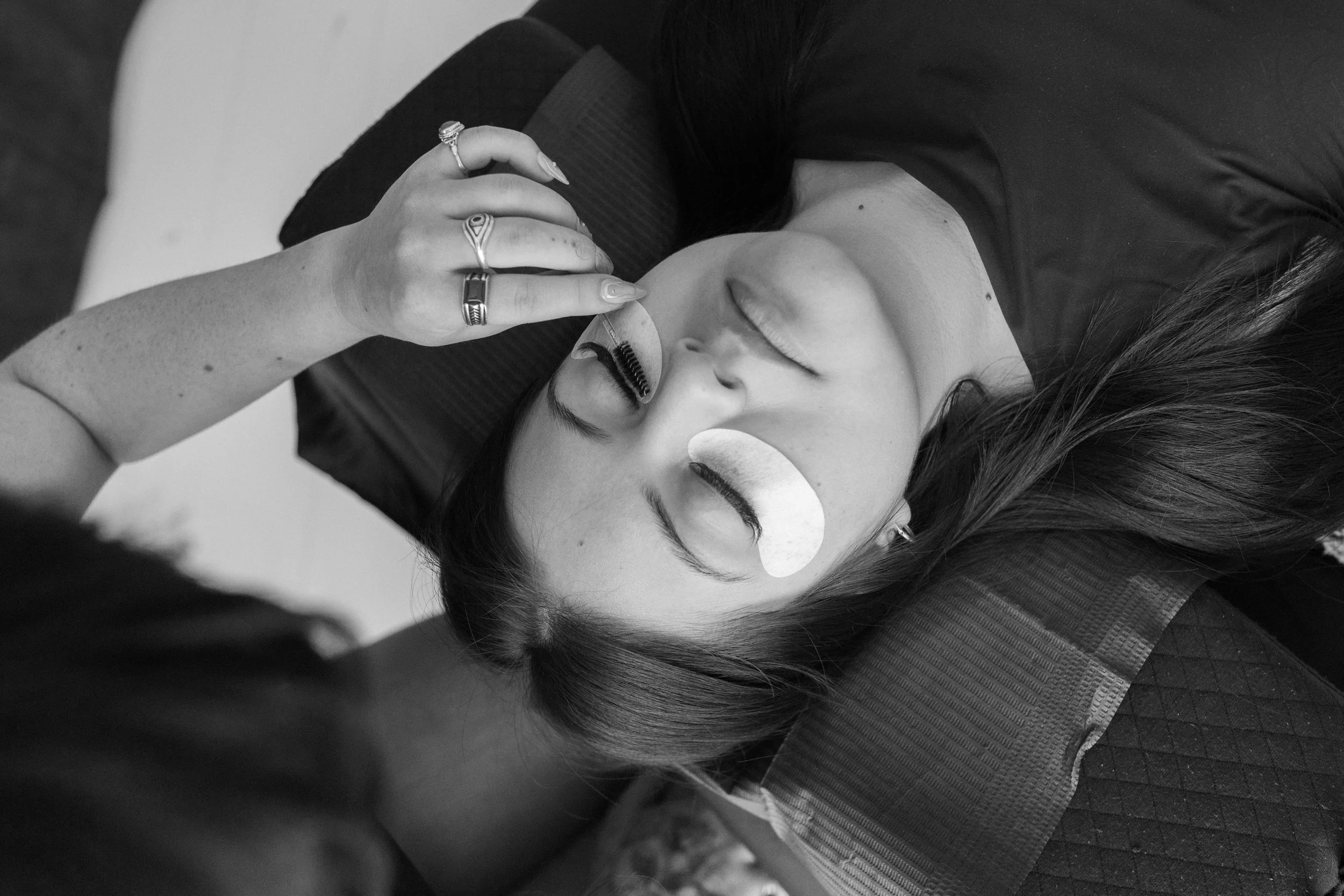 Lashes of different lengths to achieve a textured wispy look.